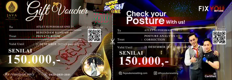 Ruang Perawatan kami di desain khusus untuk Pengaturan Otot, Tulang, dan Sendi. Demi menjaga protokol kesehatan, dengan maksimal kapasitas 2 orang (1 pasien + 1 pendamping)Reservasi terbatas.